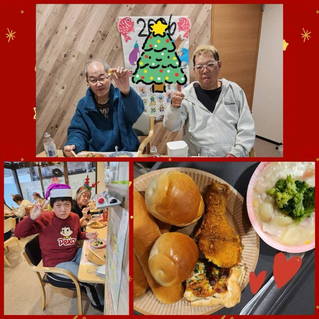 公式Instagram更新[生活介護☘️はっぴーがーでん☘️] お知らせ 2026.01.05 はっぴーがーでん忘年会をしました🎄 メニューはクリームシチュー、キッシュ、パン、チキン🍗デザートはケーキです🎂 かわいい職員サンタさん🎅🧑🎄もいますね❤️ 食事の後は、大興奮のビンゴ大会です❣️ どんな景品が当たるかドキドキ💓大盛り上がりでした❣️❣️ 今年も一年、皆様と一緒に楽しく過ごせたことに感謝してまた、来年もよろしくお願いしますとの意味を込めた忘年会でした🤩💖 https://www.instagram.com/p/DSs4G0qk3hx/?img_index=1